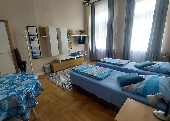 Zlokalizowany jedynie 1 km od Miasta Myszy, apartament o powierzchni 80 m^2 jest również w odległości krótkiego spaceru od Nowej Starówki. Park im. Stefana Żeromskiego w Kołobrzegu znajduje się jedynie 7 min spacerem od tego apartamentu. Obiekt leży w bliskiej odległości od Pomnika Zaślubin Polskiego z Morzem w Kołobrzegu.